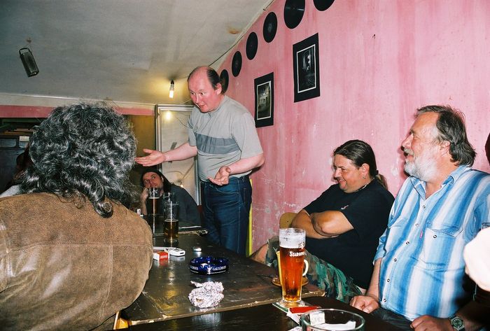 Dernisáž výstavy černobílých fotografií v Praze na Žižkově v prostorách klubu Exit.